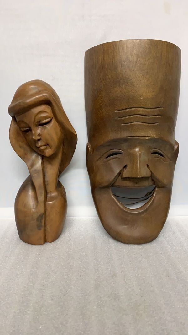 - 3F1083→木彫り 女性像 お面 置物 木製 レトロ フィリピン ホノルル アジアン 飾り 魔除け お守り インテリア 置物