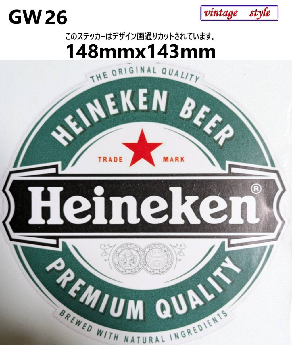> GW26-04 特価 ヴィンテージスタイル Heineken ハイネケン ステッカー ビール ダメージ加工 バー パブ レトロ ガレージ デカール