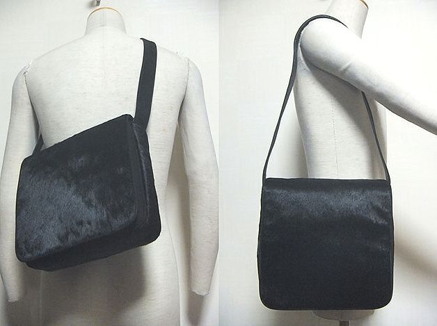 > 未使用:ANNE KLEIN(アンクライン).ハラコ レザー ショルダーバッグ(黒/上質.毛付き.牛革/フラップ式/H27W26D6/5351 lgb shellac type)