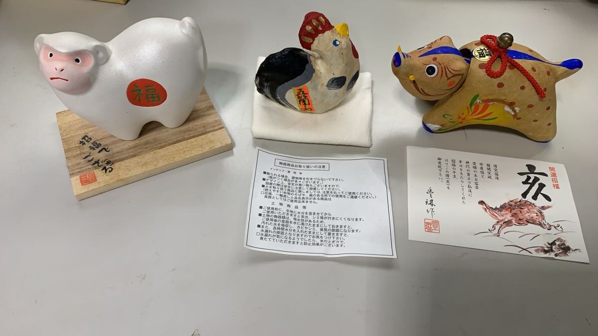 - C2132→招福の干支 3点 まとめ 首振亥 豊琳作 豪僕作 干支 正月飾り 縁起物 開運招福 招福俵 中古
