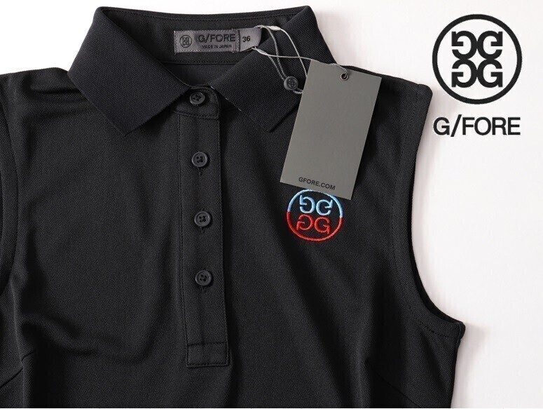 > ★正規品★G/FORE ジーフォア★レディースノースリーブジャージポロシャツ★40【073213058】ブラック黒【本物保証】速乾軽量★ストレッチ