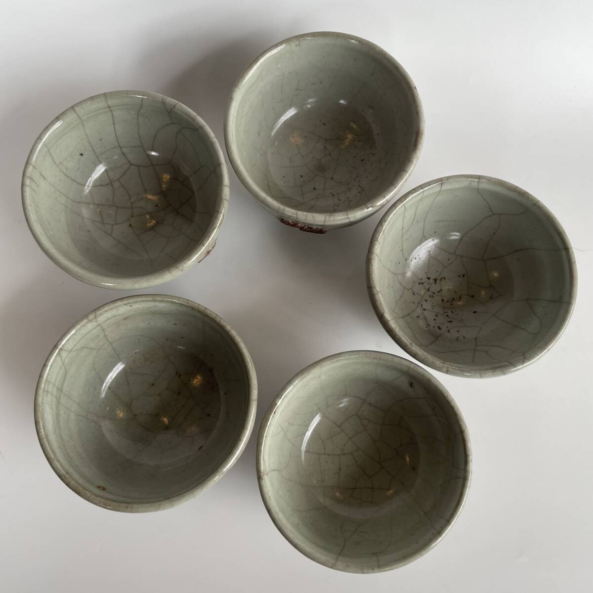 - 中国 古玩 龍泉窯 南宋 明 ぐい呑 盃 杯 湯のみ 湯呑 湯飲 茶碗 5客