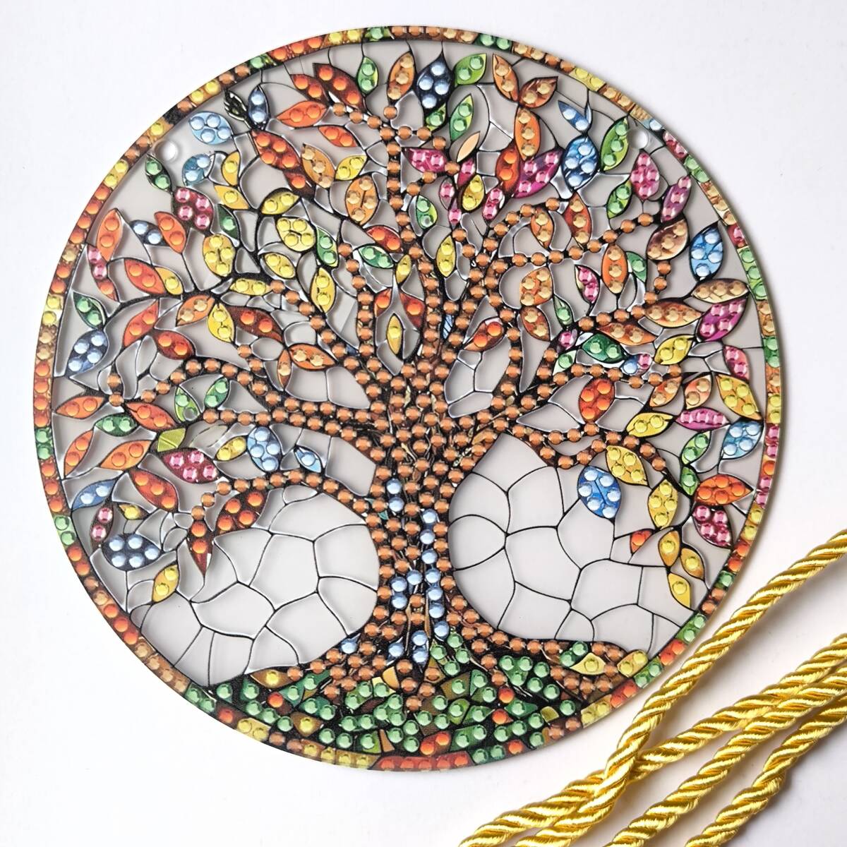 - 【生命の樹・キラキラ】アクリルプレート 飾り サンキャッチャー 紐付き オブジェ お洒落 壁や窓辺の飾りに◎◎