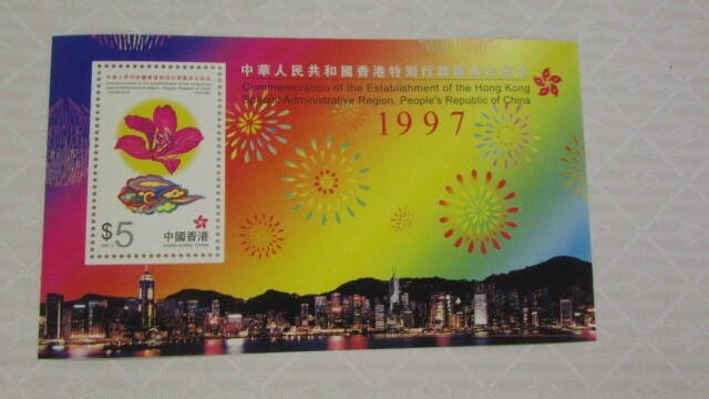 - 120 香港 香港特別行政区;バウヒニアの花と雲 1種小型完 1997-07-01