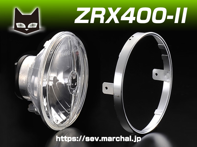 > ZRX400-2 マーシャルヘッドライト722・702スタールクス クリアーレンズ ユニット 純正ライトケース・外リムで装着800-8402
