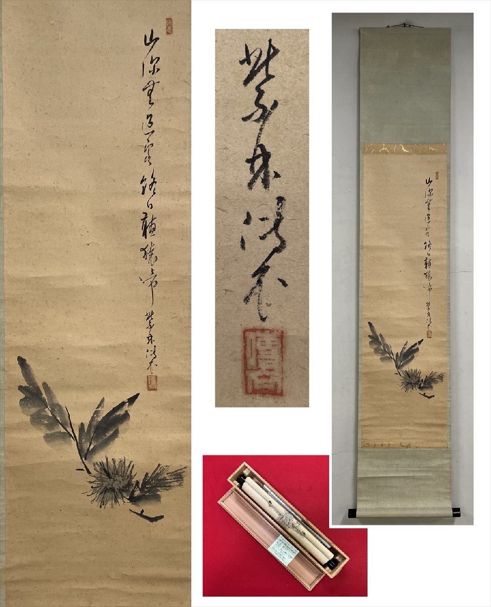 - 【千寿】大徳寺派 第六代管長 全提要宗 円山伝衣 伝衣室 栗画賛 紙本 a975◆在銘 箱 茶掛 掛軸 掛物 茶道具 100028021