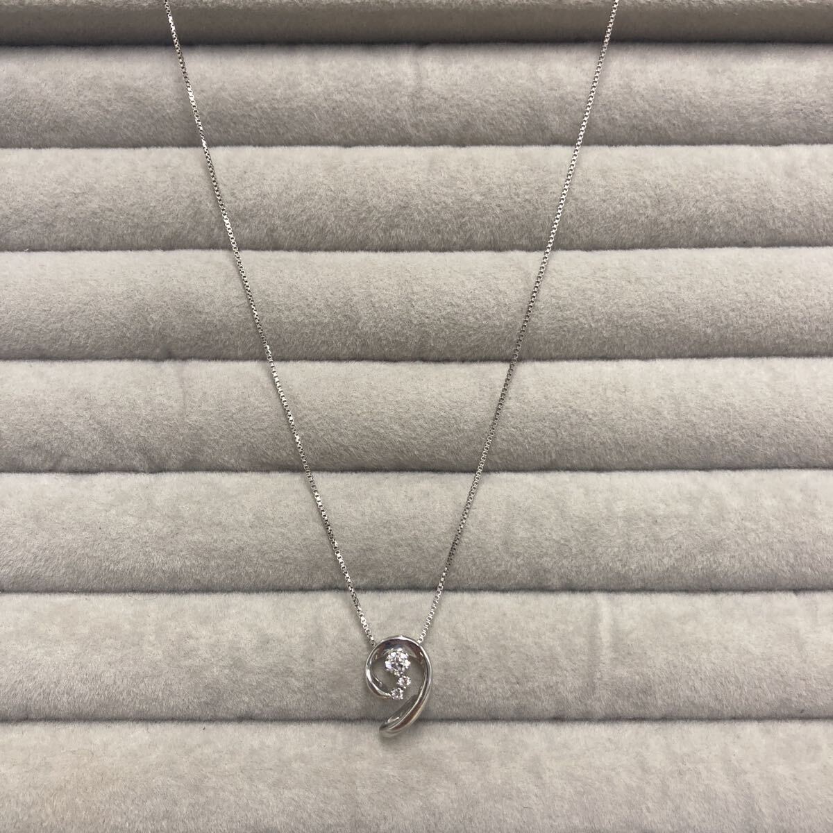 - K10WG ダイヤモンドネックレス 0.08ct ホワイトゴールド 40cm