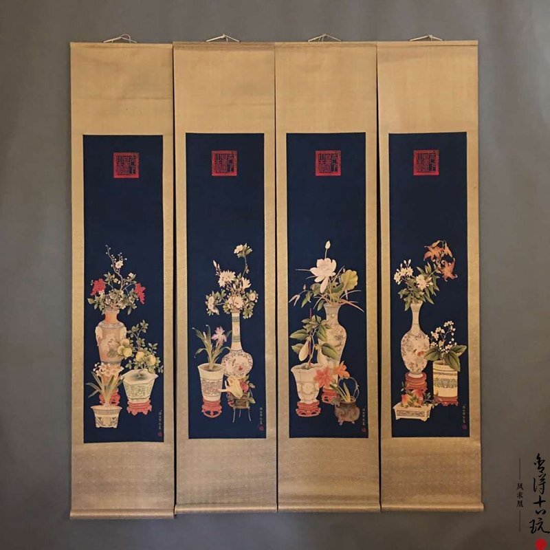 - 中国書画 掛軸 花 生花 4枚セット 絹使用 収蔵品 コレクション 鑑賞 中国美術品 巻物 zh191