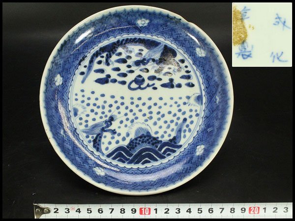 - 【銀閣】中国美術 青花 龍紋 皿 φ20cm 旧家蔵出 送料無料(LC371)