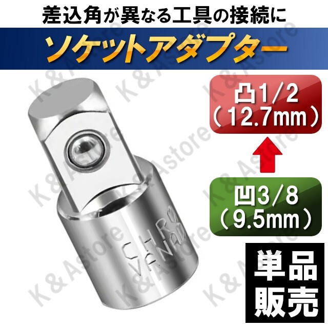 > ソケットアダプター ソケットレンチ 差込角 サイズ 変換アダプター 3/8(9.5mm) → 1/2(12.7mm) 車 バイク メンテナンス 工具