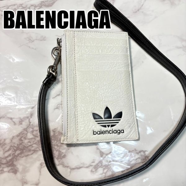 - 【早い者勝ち】バレンシアガ アディダスコラボ フラグメントケース ストラップ付 モノクロ コインケース カードケース BALENCIAGA #B594