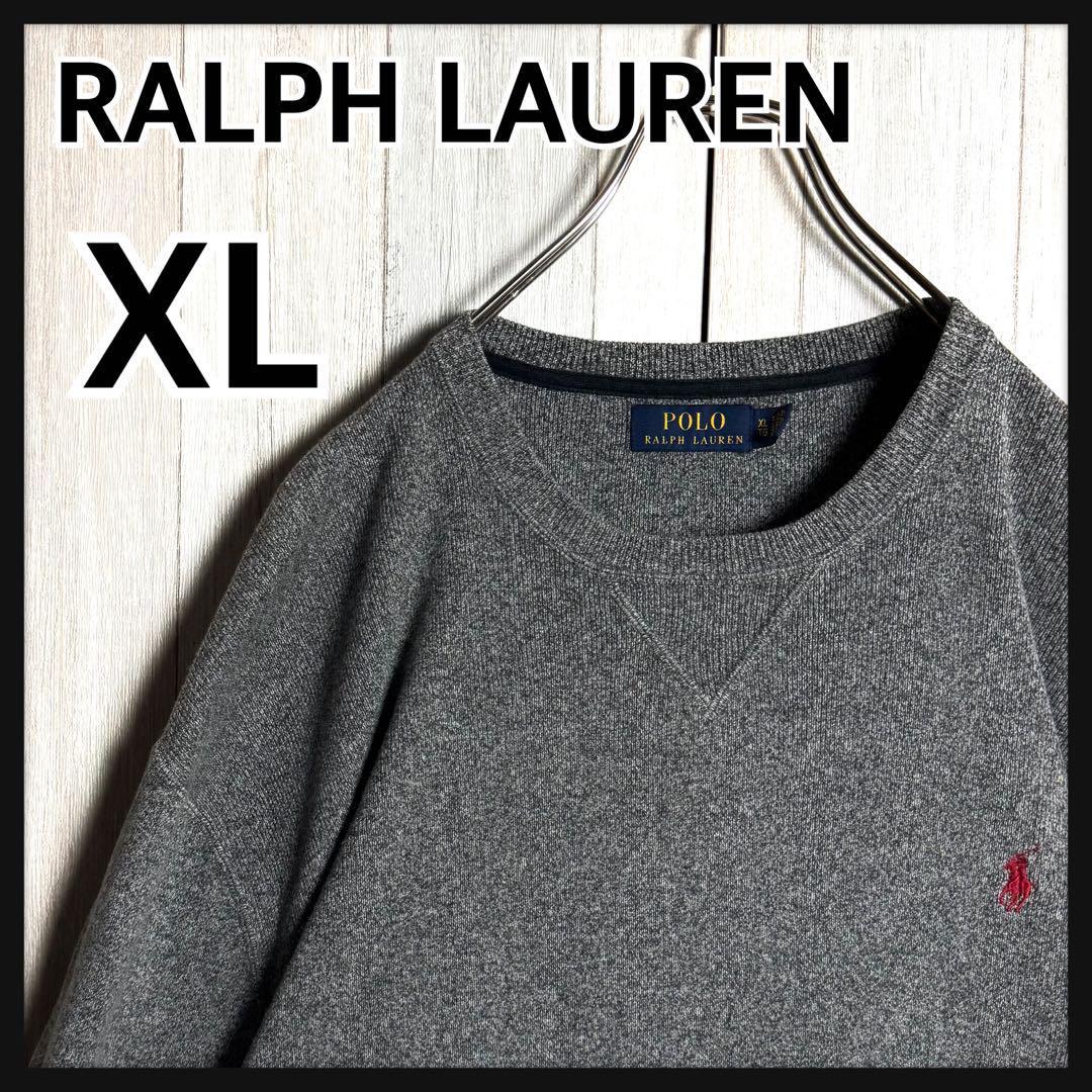 - 【現行・美品】POLO RALPH LAUREN ポロラルフローレン レッドポニー刺繍ロゴ メランジ 圧縮ニット プルオーバー・セーター グレー XL