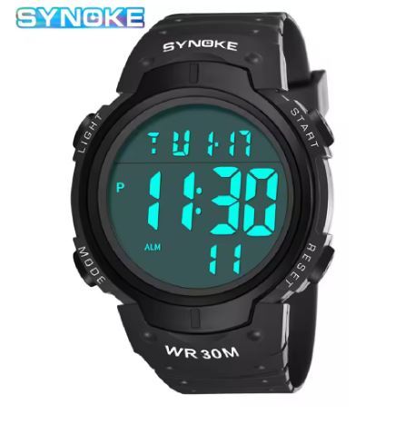 - 送料無料 未使用品 ブラック SYNOKE デジタルウォッチ メンズ腕時計 (ワンポイントカラー ブラック)