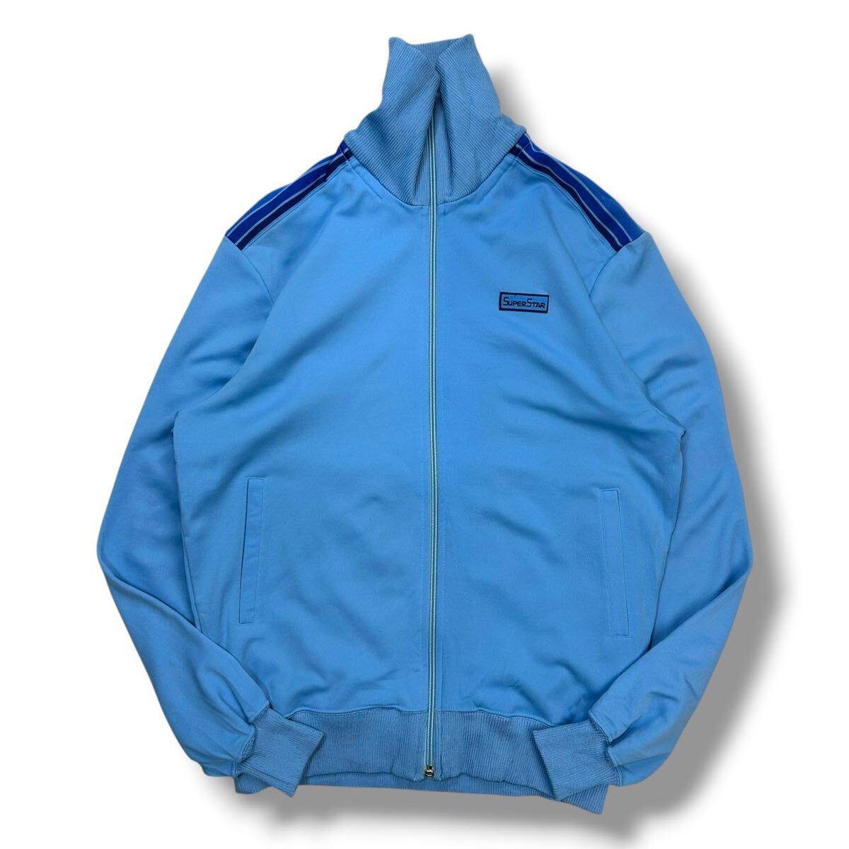> (IT1003)SUPER STAR スーパースター トラックジャケット ジャージ フルジップ M ライトブルー ワンポイントロゴ レトロ 古着