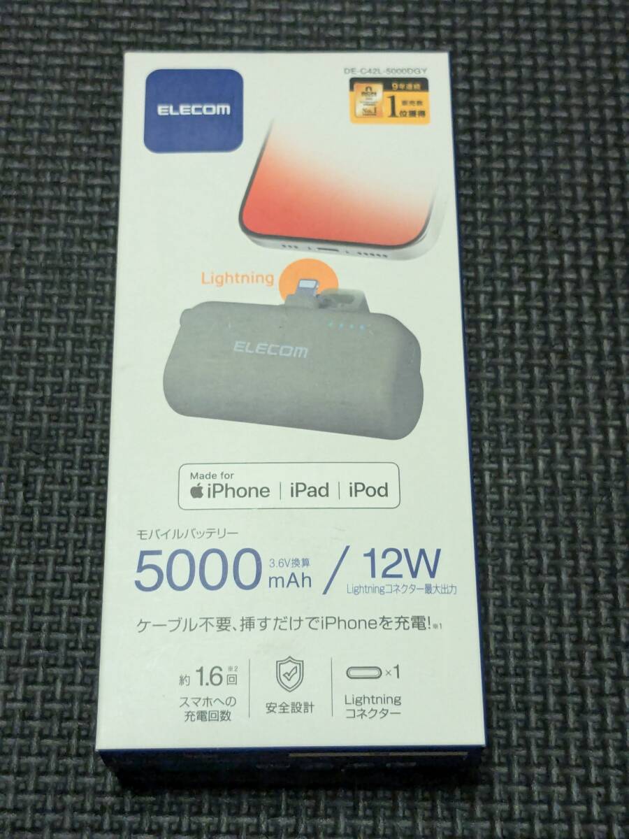 - ◎0710u0345 エレコム モバイルバッテリー 12W 5000mAh Lightning 直挿し Type-Cケーブル付属 ダークグレー DE-C42L-5000DGY