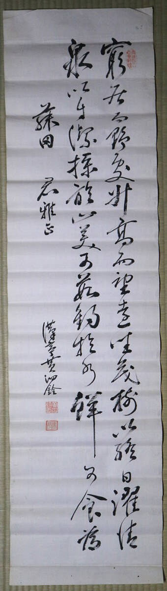- sgk1) 漢亭 黄泗銓 三鏡齋 二行書「漢詩文」墨書 紙本 捲り <中国書画