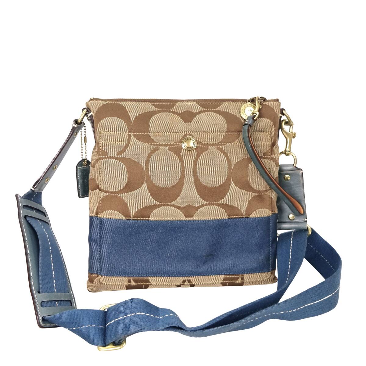 - 本物■コーチ■ラージ シグネチャー ショルダー ベージュ ブルー 斜めがけショルダーバッグ /918951
