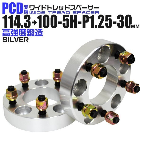 > Durax正規品 PCD変換 ワイドトレッドスペーサー 114.3→100-5H-P1.25-30mm 銀 5穴のPCD114.3mmからPCD100mm ホイールスペーサー