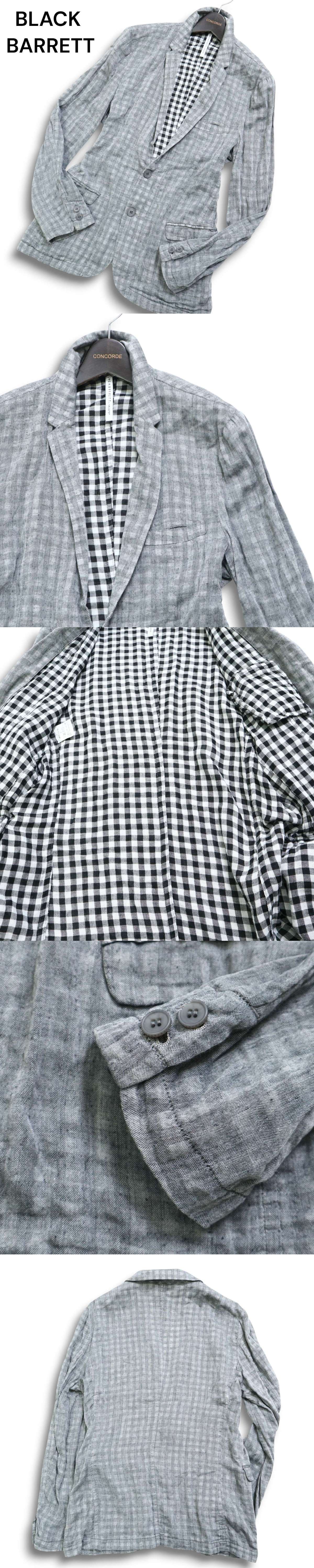 - BLACK BARRETT ブラックバレット ニールバレット 春夏 ダブルガーゼ★ チェック テーラード ジャケット Sz.3 メンズ グレー