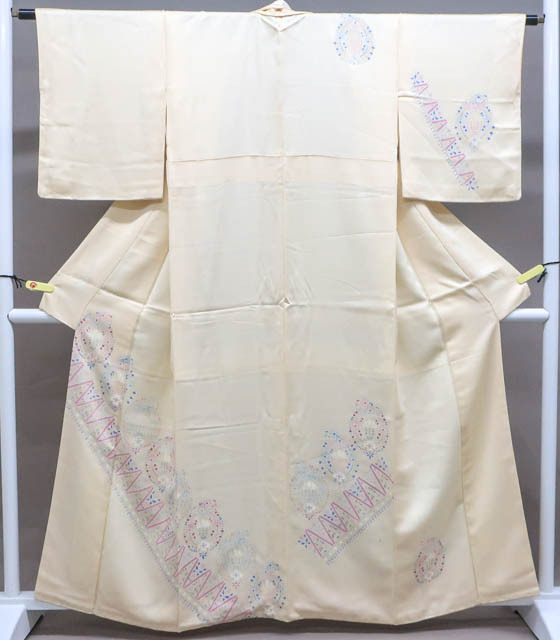 - 《京都一輝堂》【着物】付下げ 刺繍 オリエンタル 花文 身丈約159cm 裄丈約62cm 25z01-341