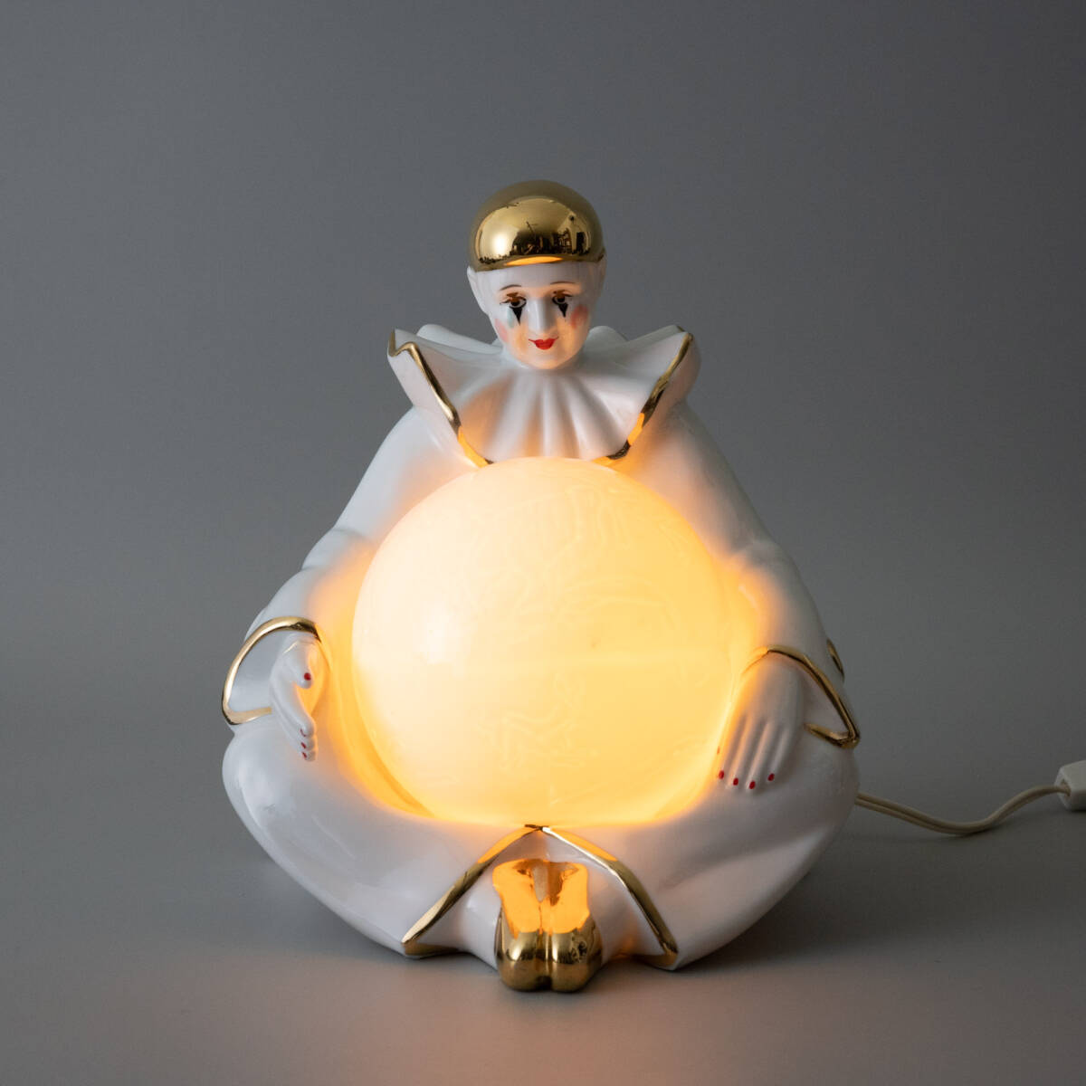 - ピエロ 陶器照明 ライト 置物 オブジェ 飾り 人形