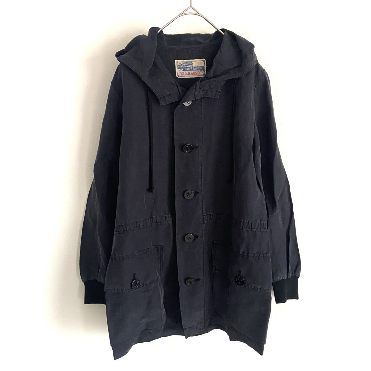 > 美品★【ポロジーン/ラルフローレン】上質シルク×リネン素材配合 薄手フーディジャケット/レディース/黒/S/衝撃プライス!完全売切★C17