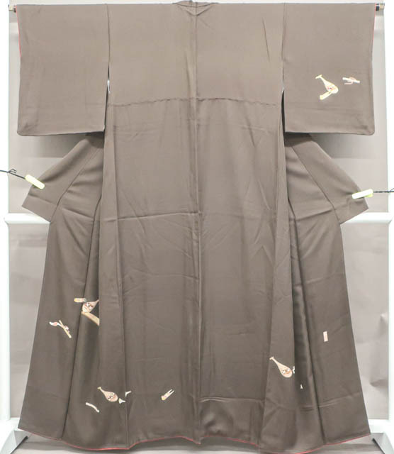 - 《京都一輝堂》【着物】 訪問着 作家物 落款入り 和楽器文様 身丈約159.5cm 裄丈約64.5cm 24z-2358