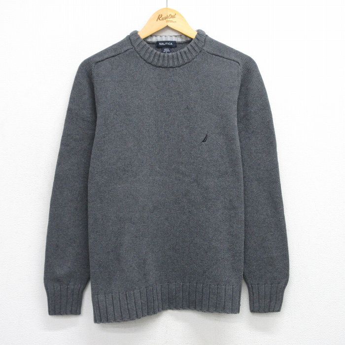 > L/古着 ノーティカ 長袖 ブランド セーター メンズ ワンポイントロゴ ラグラン コットン クルーネック 濃グレー 25oct01 中古 ニット トッ