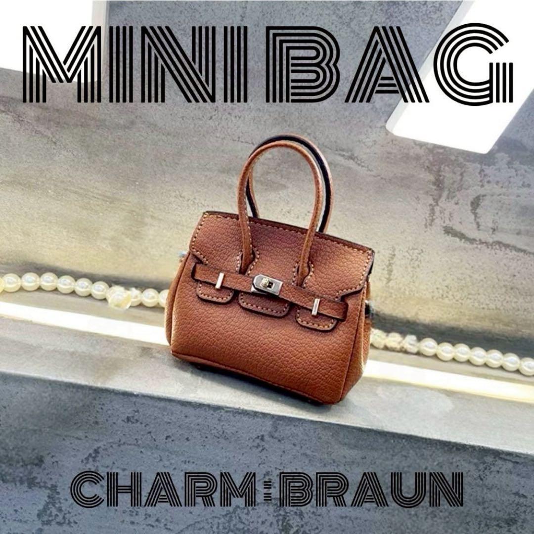 - 小物入れ バッグ型チャーム キーホルダー ストラップ イヤホンケース ブラウン