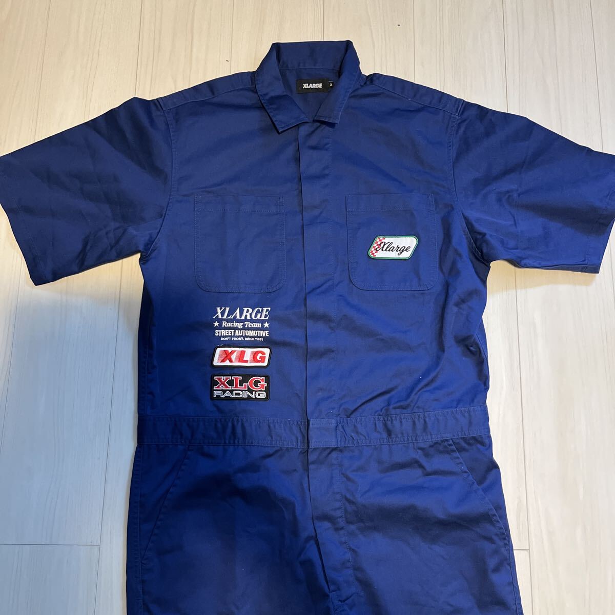 - 1円スタート XLARGE エクストララージ メンズ古着 つなぎ オールインワン 作業着 半袖 ツナギ メカニック Mサイズ オーバーオール ブルー