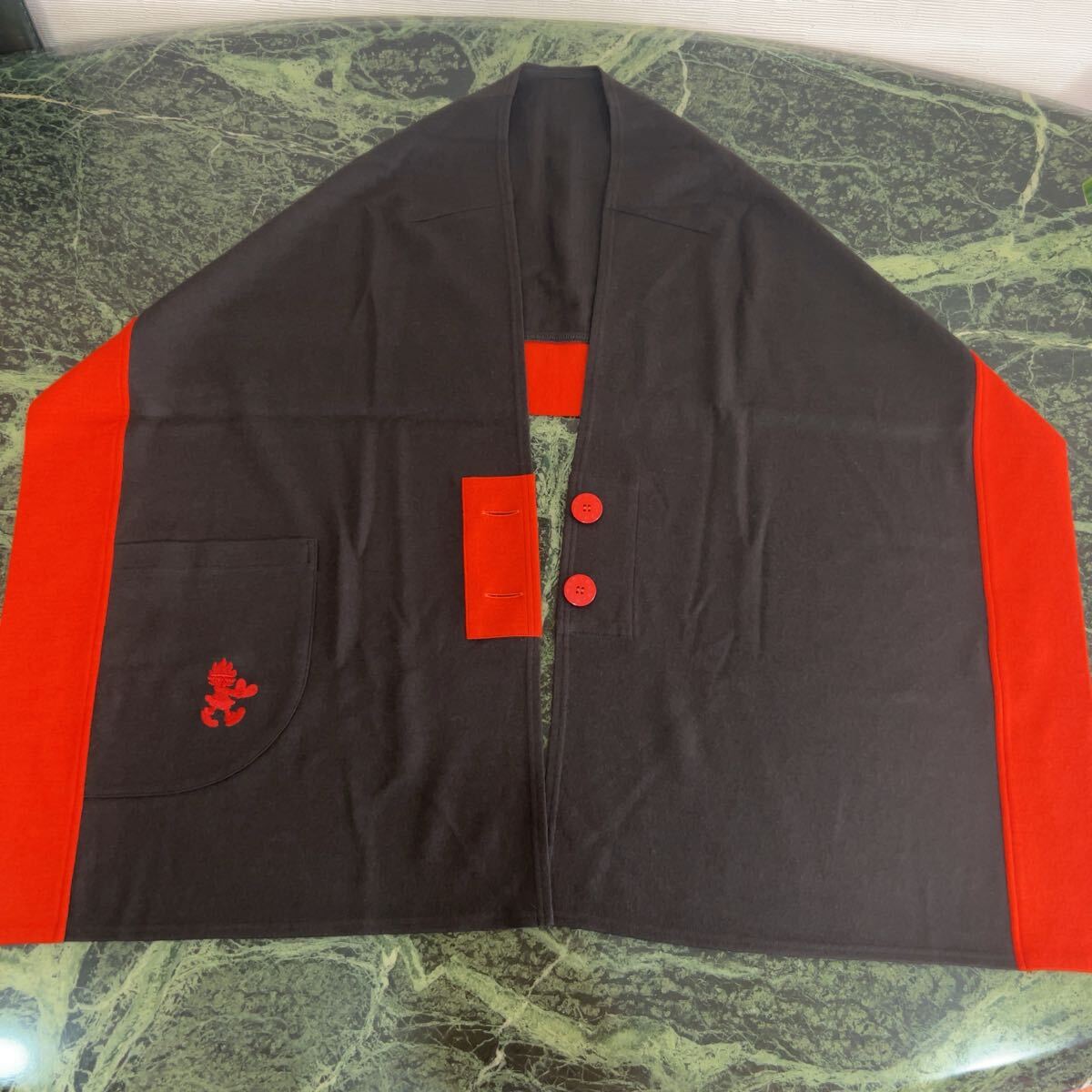 - 【美品】Topys★トピィーズ カーディガン風ストール 黒×オレンジ 毛100% 羽織 マント トピーズ