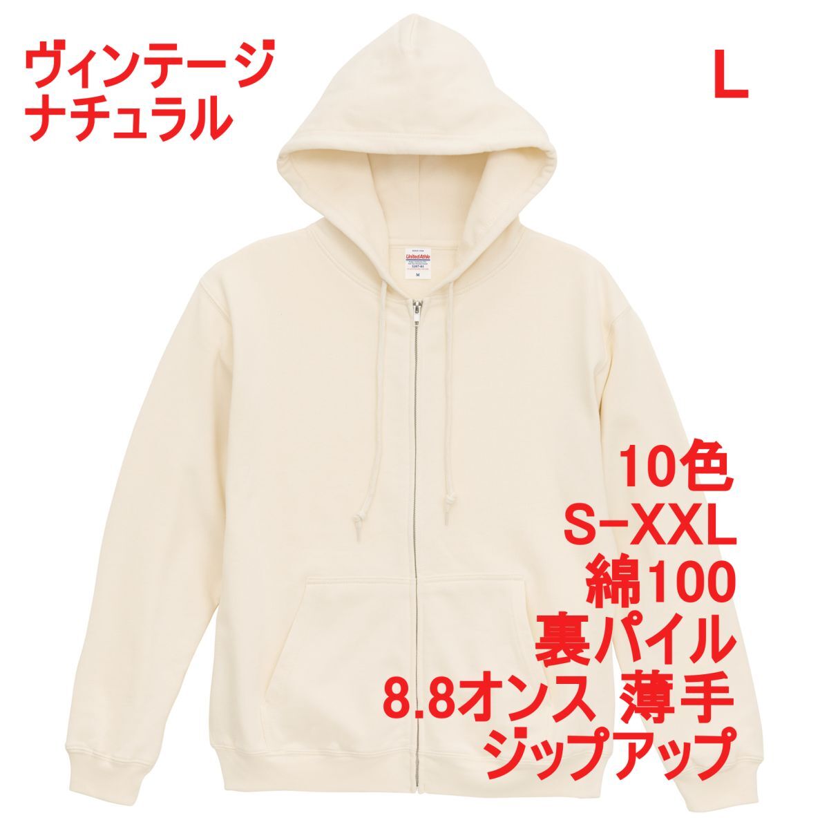 - パーカー L ヴィンテージ ナチュラル 薄手 8.8オンス 裏パイル ジップアップ フルジップ 無地 定番 綿 スウェット A2146 アイボリー 539701