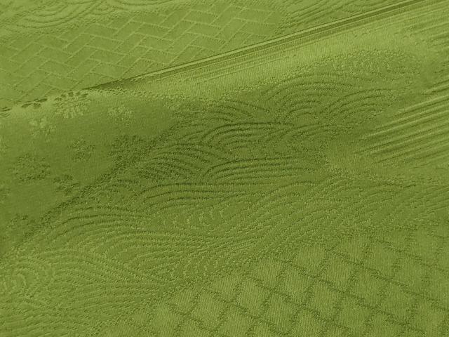 - 平和屋着物■上質な色無地 霞吉祥地紋 草色 正絹 逸品 未使用 CAAX6560ou