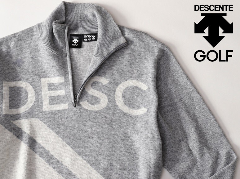 > ★中古品★DESCENTE GOLF デサントゴルフ★バイカラーハーフジップアップニットセーター★L【DGMSJL00AT】グレー灰ホワイト白【本物保証】