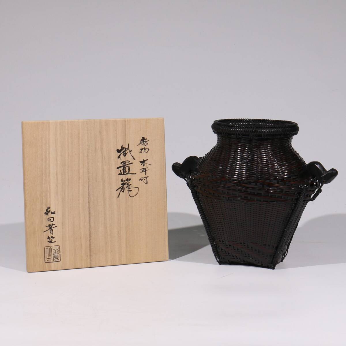 - 和田菁竺 作 唐物 竹 挂置籠 花器