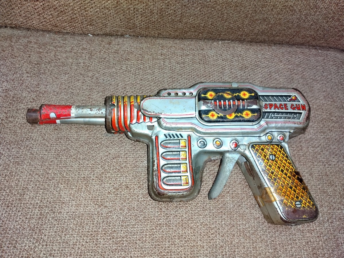 - K441 昭和レトロ Shudo スペースガン Flash X-1 ブリキ 音 当時物 ピストル 玩具