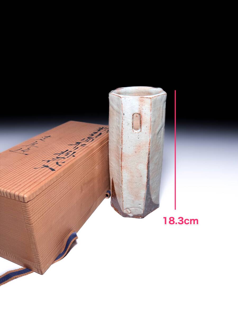 - [即決]志野焼?萩焼?粉引面取り掛花入茶道具茶器花器花生花瓶壺花入一輪挿し 和室インテリアオブジェ美品古民具古道具ビンテージレトロ