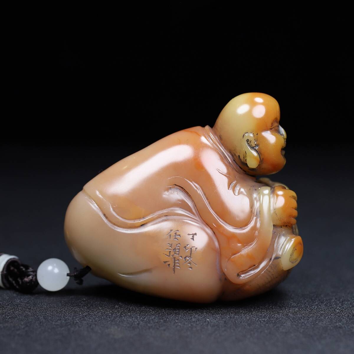 - 旧 清代 寿山石 『 和気生財』 弥勒仏 手把手件 中国古美術 古賞物 唐物 S710