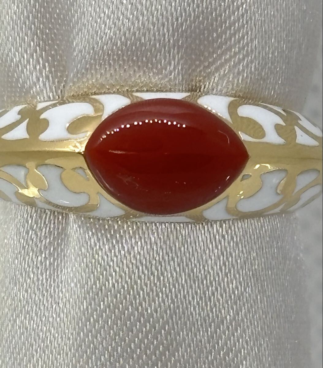 > 新品//K18/天然血赤珊瑚 /国産本珊瑚/素敵なデザイン指輪リング(941) サンゴ 指輪 リング 天然サンゴ