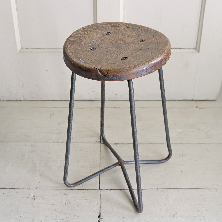 - 1950年代 フランスアンティーク 木製座面の作業用 スツール 工業系 アイアン 鉄製 インダストリアル アトリエ ガレージ ビンテージ 椅子