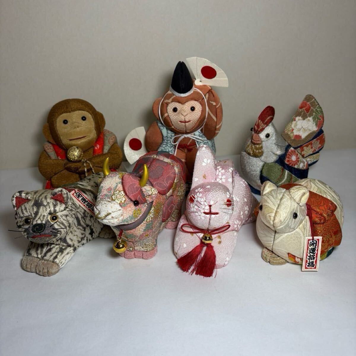 - 干支 木目込み 人形 7点まとめて 猿 兎 牛 など 置物 人形 インテリア 伝統工芸 郷土玩具 民芸品 縁起物 開運 コレクション 現状品