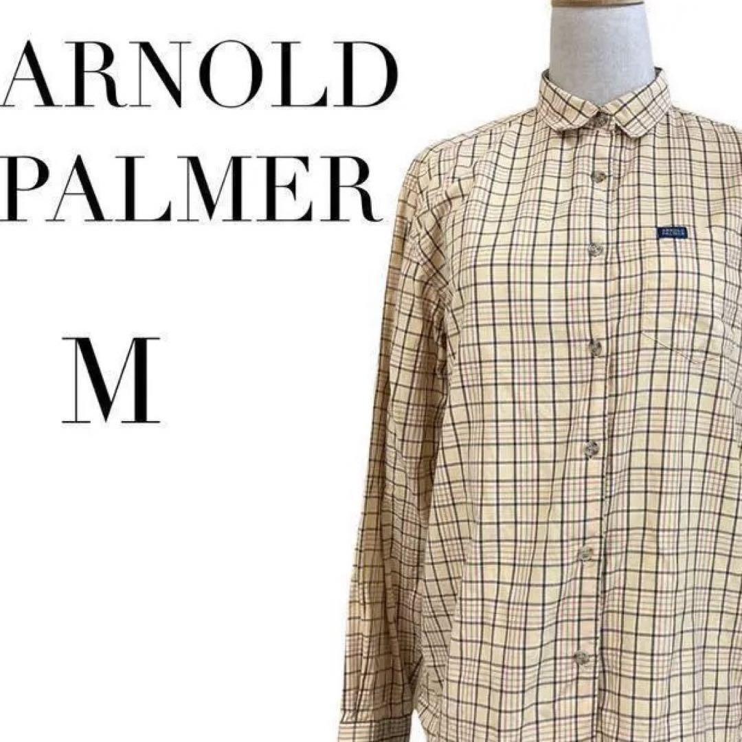 > 【美品】 アーノルドパーマー ARNOLD PALMER チェックシャツ 長袖 ロング丈 ベージュ M