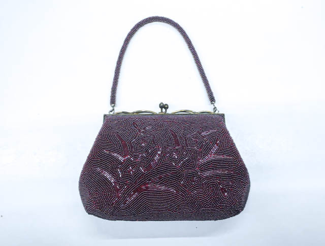 > 《京都一輝堂》【着物】和装小物 アンティーク ビーズバッグ 花柄 24W-203