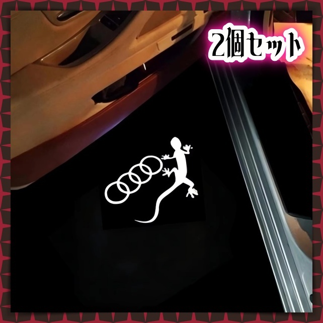 - 2個 アウディ Audi カーテシ ライト ドア ランプ LEDロゴ投影ライト ゲッコー とかげ リング エントリー A1 A3 A4 A5 A6 A7 Q2 Q3 Q5 Q7