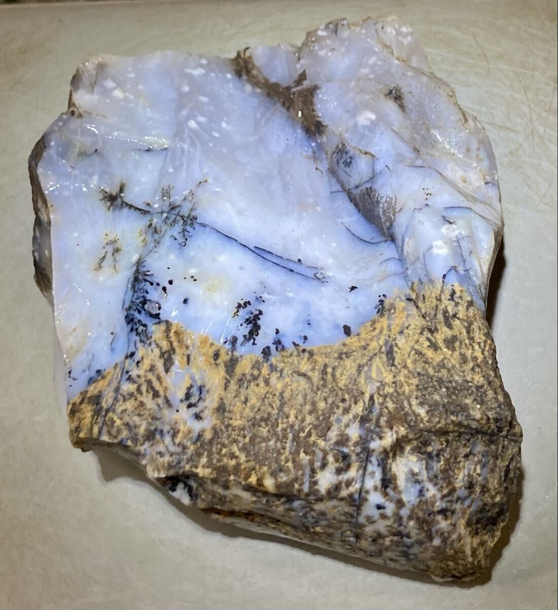 - インドネシア領 ジャワ島産巨石天然ホワイトデンドライト原石1330gレア石^ ^