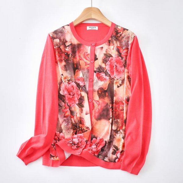 - wnm 綿50%テンセル50% カーディガン 羽織物 アウター チュニック トップス ニット セーター フリーサイズ ゆったり 前身頃花柄生地1