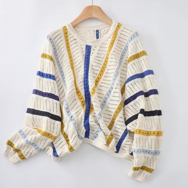 - wnm 綿100% チュニック トップス ニット セーター フリーサイズ ゆったり ライン入り
