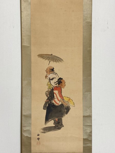- 《魚亀》【模写】秋峯 「万歳」紙本 人物図 日本画 茶掛 茶道具 古美術 中国 掛軸 掛け軸 人が書いたもの