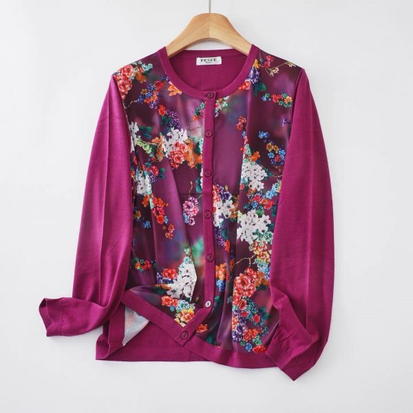 > wnm 綿50%テンセル50% カーディガン 羽織物 アウター チュニック トップス ニット セーター フリーサイズ ゆったり 前身頃花柄生地10