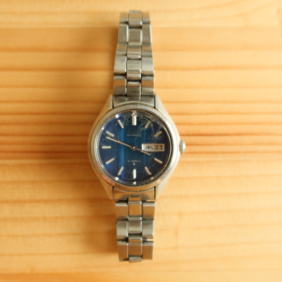 > 腕時計 11 SEIKO AUTOMATIC セイコー カレンダー 青文字盤 手巻き 動作確認済 検) 古時計 アンティーク レトロ